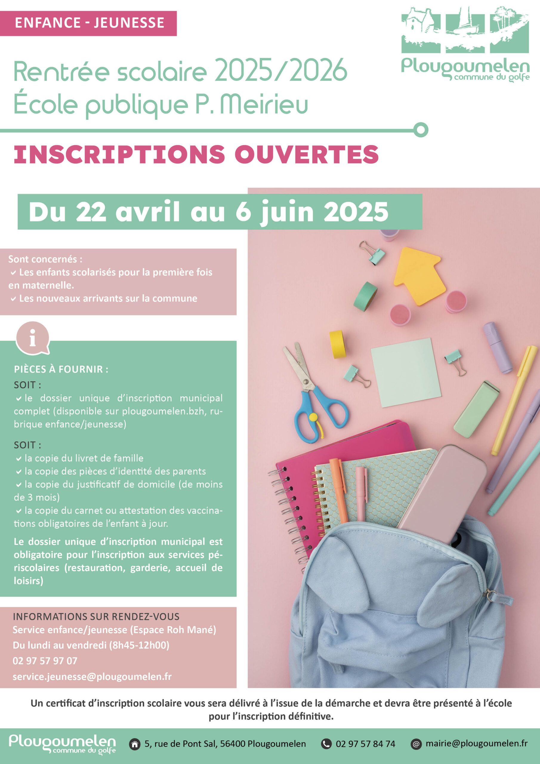 Les inscriptions auront lieu du 22 avril au 6 juin 2025
