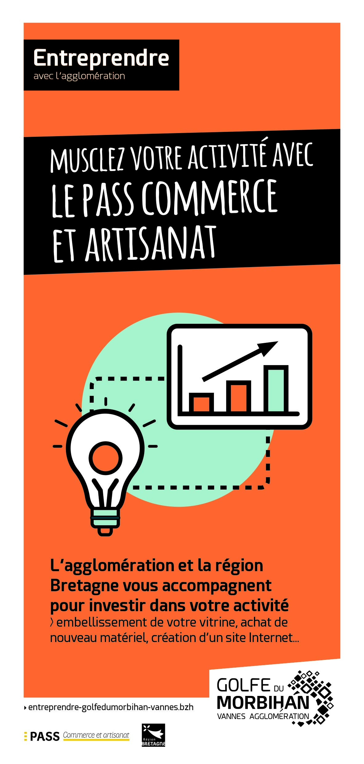 Le Pass commerce et artisanat est une subvention pouvant aller jusqu’à 75000 € destinée aux artisans et commerçants installés au centre de communes de moins de 15000 habitants. Pour Vannes, les professionnels des quartiers de Ménimur et Kercado sont également éligibles. Cette aide est financée à parts égales par la Région et l’agglomération dans les communes de moins de 5 000 habitants et à 70 % par l’agglomération dans les communes de plus de 5 000 habitants.