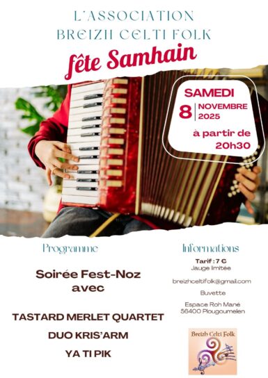SOIRÉE FEST NOZ avec : Tastard Merlet Quartet Kris'Arm Ya Ti Pik 🗓️ Samedi 8 novembre 2025 ⌚ 20h30 🏠 Espace Roh Mané Rue du Roi…